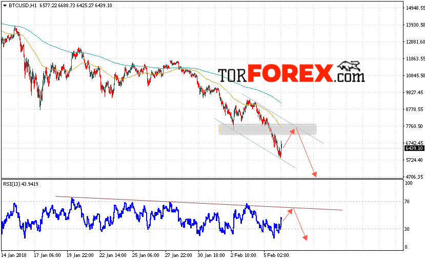 Таким образом, Биткоин прогноз и аналитика на 7 февраля 2018 предполагает попытку теста верхней границы канала вблизи 7650 и продолжения падения в область ниже уровня 4700, дополнительным сигналом в пользу падения Bitcoin выступит тест линии сопротивления на индикаторе относительной силы.