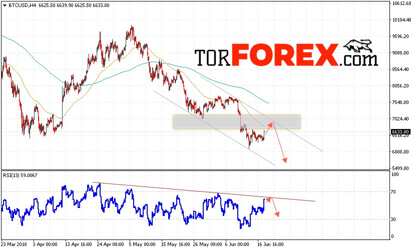 Таким образом, Bitcoin прогноз курса и аналитика на 19 июня 2018 предполагает попытку теста уровня сопротивления вблизи области 6950 и продолжения падения с потенциальной целью на уровне 5800, дополнительным сигналом в пользу падения Bitcoin выступит тест линии сопротивления на индикаторе относительной силы.