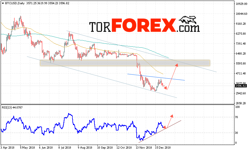 Таким образом, Bitcoin прогноз курса на 31 декабря — 4 января 2019 предполагает попытку области поддержки вблизи уровня 3400. Затем продолжение роста криптовалюты в область выше уровня 5500. Дополнительным сигналом в пользу роста курса Bitcoin выступит тест линии поддержки на индикаторе относительной силы. Отменой варианта роста котировок криптовалюты Bitcoin выступит падение и пробой области 2950. В этом случае стоит ожидать продолжение снижения.