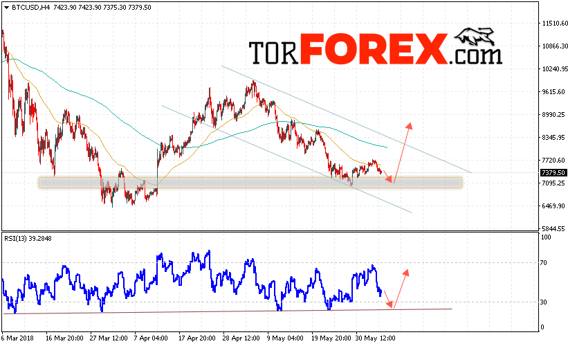 Таким образом, Bitcoin прогноз курса и аналитика на 6 июня 2018 предполагает попытку теста уровня поддержки вблизи области 7090 и продолжения роста с потенциальной целью на уровне 8450, дополнительным сигналом в пользу роста Bitcoin выступит тест области поддержки на индикаторе относительной силы.