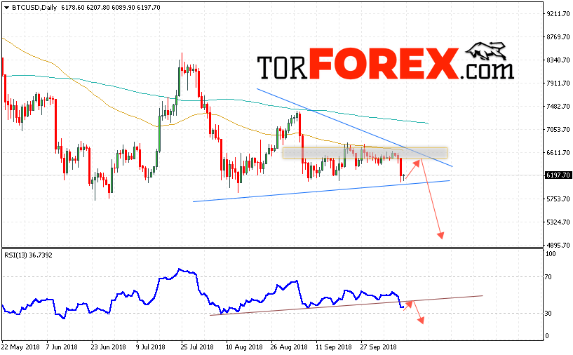 Bitcoin BTC/USD завершает торговую неделю на уровне 6197 и продолжают движение в рамках формирования модели «Треугольник». На данный момент стоит ожидать попытку теста области сопротивления вблизи уровня 6550. Откуда вновь стоит ожидать отскок и попытку продолжения падения курса Bitcoin с потенциальной целью ниже уровня 5000.