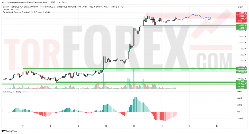 Пробой и закрепление выше 118900 может открыть путь к 120000 и выше.