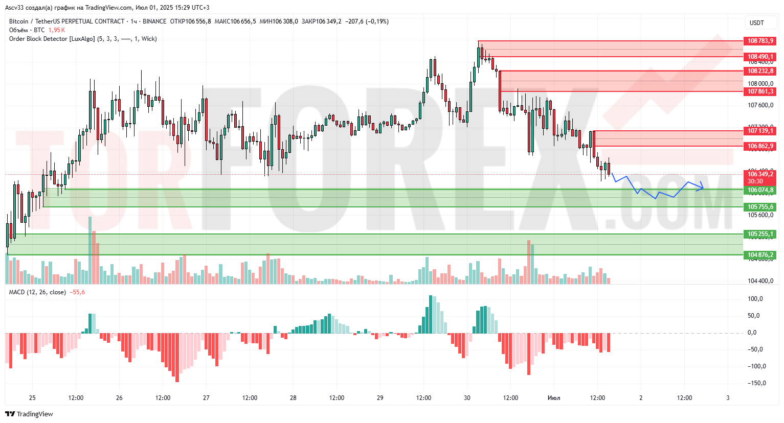 106,074–105,755 — ближайшая зона спроса, которая может временно приостановить снижение.