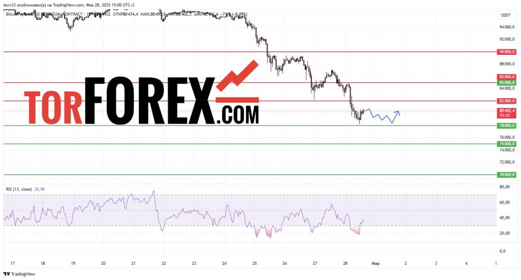 - Уровни поддержки: $78 000, $75 000, $70 000