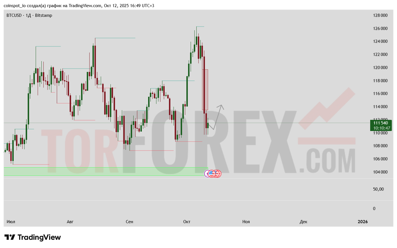 Удержание цены выше $110,000 и формирование разворотной модели может привести к коррекционному роску в направлении $114,000-$116,000.