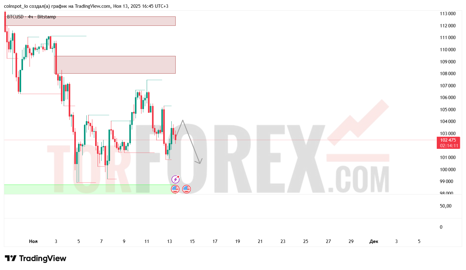 - Заполнение FVG-зоны усилит вероятность снижения к 99 000 USD.