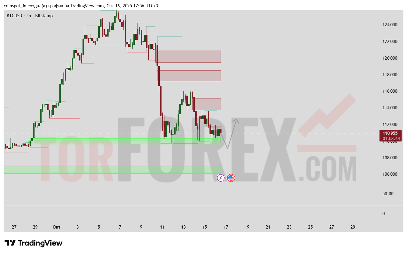 На 17 октября 2025 года для BTC/USD наиболее вероятна волатильность в диапазоне 108 000-113 000 USD. Торговые идеи следует строить от границ этого диапазона: