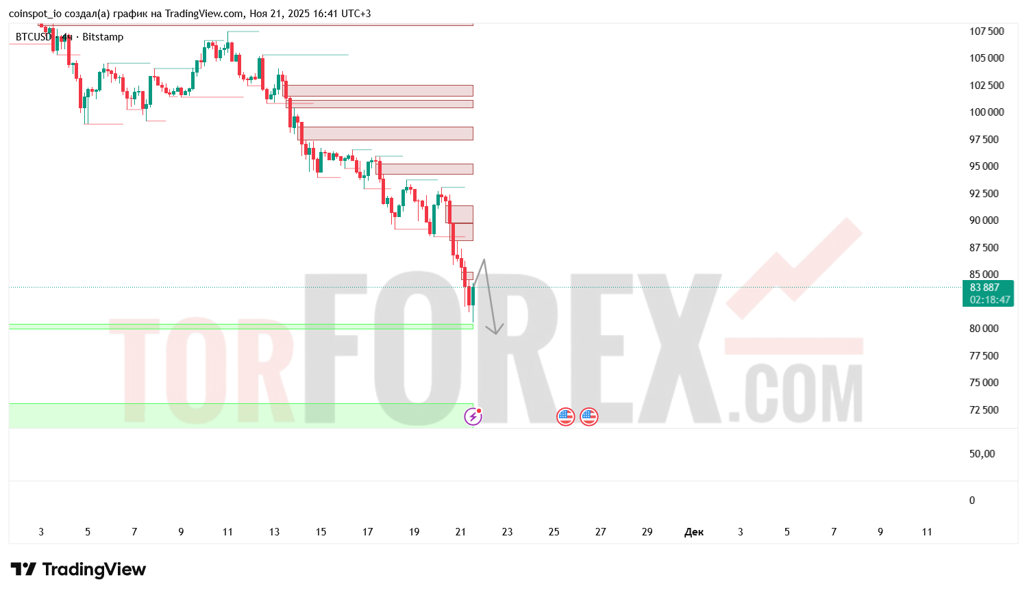 • Нижняя FVG: 81 000–79 500 USD — остаётся незаполненной и может притянуть цену при продолжении снижения