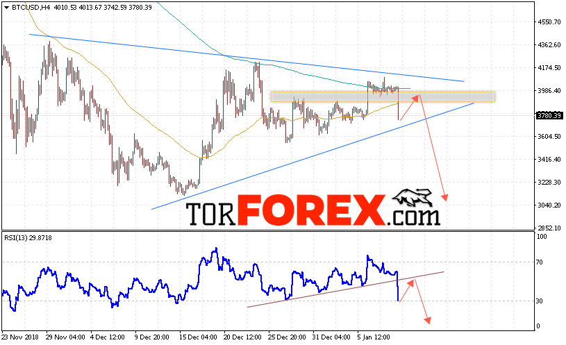 Таким образом, BTC/USD прогноз курса Bitcoin на 11 января 2019 предполагает попытку теста уровня сопротивления вблизи области 3950. И далее продолжение падения криптовалюты с потенциальной целью на уровне 3040. Дополнительным сигналом в пользу снижения курса Bitcoin выступит тест линии тренда на индикаторе относительной силы. Отменой варианта падения криптовалюты станет рост и пробой области 4150.