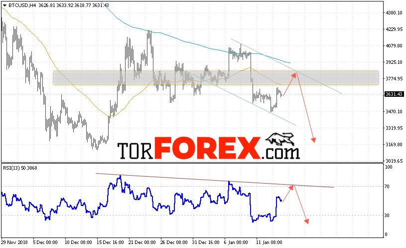 Таким образом, BTC/USD прогноз курса Bitcoin на 16 января 2019 предполагает попытку теста уровня сопротивления вблизи области 3775. И далее продолжение падения криптовалюты с потенциальной целью на уровне 3170. Дополнительным сигналом в пользу снижения курса Bitcoin выступит тест линии тренда на индикаторе относительной силы. Отменой варианта падения криптовалюты станет рост и пробой области 3920.