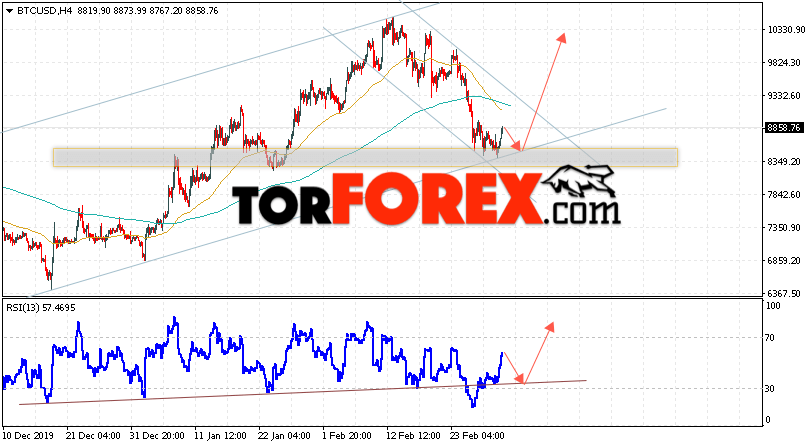 Таким образом, BTC/USD прогноз курса Bitcoin на 3 марта 2020 предполагает попытку теста уровня поддержки вблизи области 8405. И далее, продолжение роста криптовалюты с потенциальной целью на уровне 10335. Дополнительным сигналом в пользу роста курса Bitcoin выступит тест линии поддержки на индикаторе относительной силы. Отменой варианта подъёма криптовалюты станет падение и пробой области 8005. Это укажет на продолжение снижения с потенциальной целью ниже области 7205.