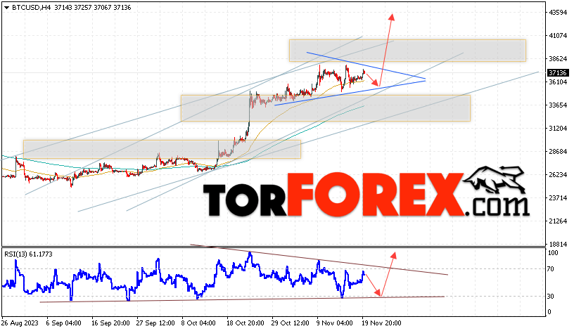 BTC/USD прогноз курса Биткоин на 21 ноября 2023