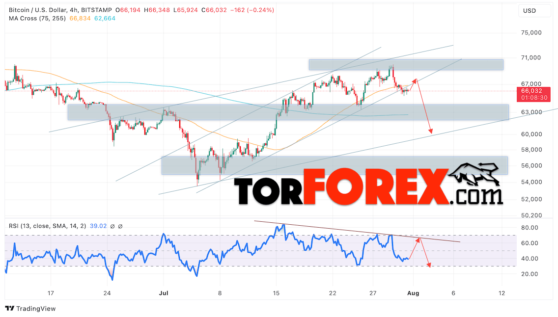BTC/USD прогноз курса Биткоина на 1 августа 2024