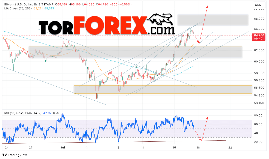 BTC/USD прогноз курса Биткоина на 18 июля 2024
