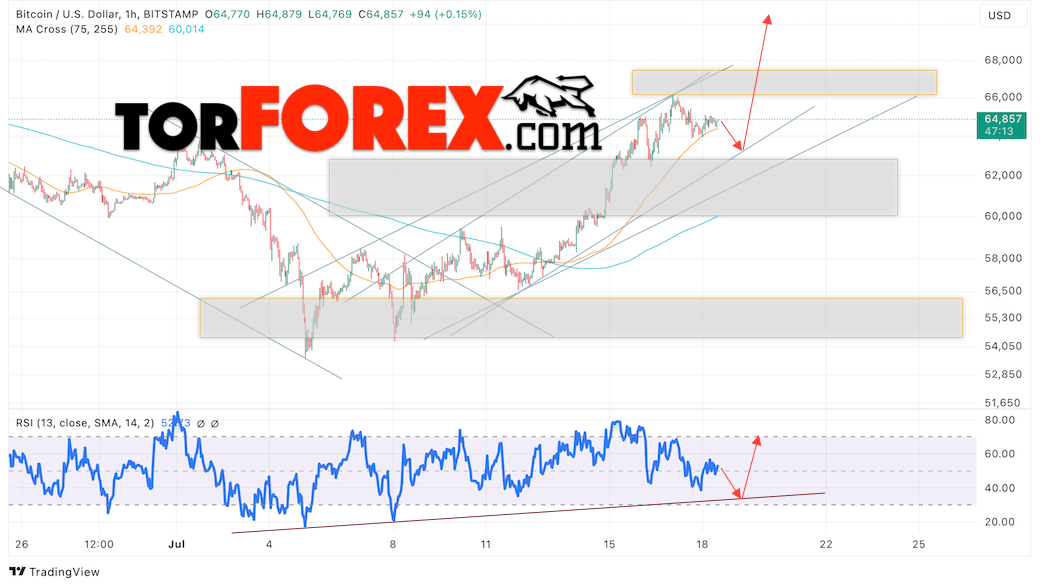BTC/USD прогноз курса Биткоина на 19 июля 2024