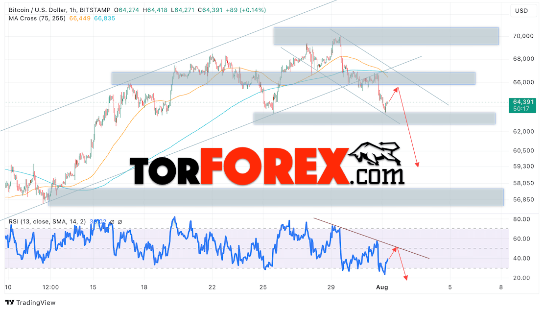 BTC/USD прогноз курса Биткоина на 2 августа 2024