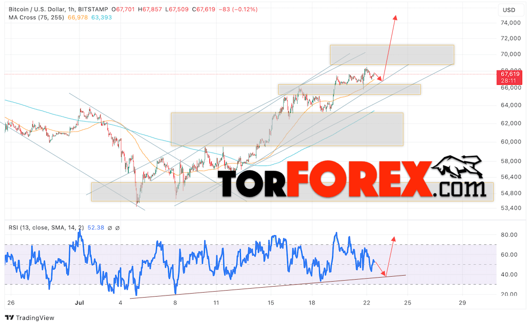 BTC/USD прогноз курса Биткоина на 23 июля 2024