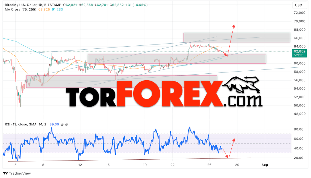 BTC/USD прогноз курса Биткоина на 28 августа 2024