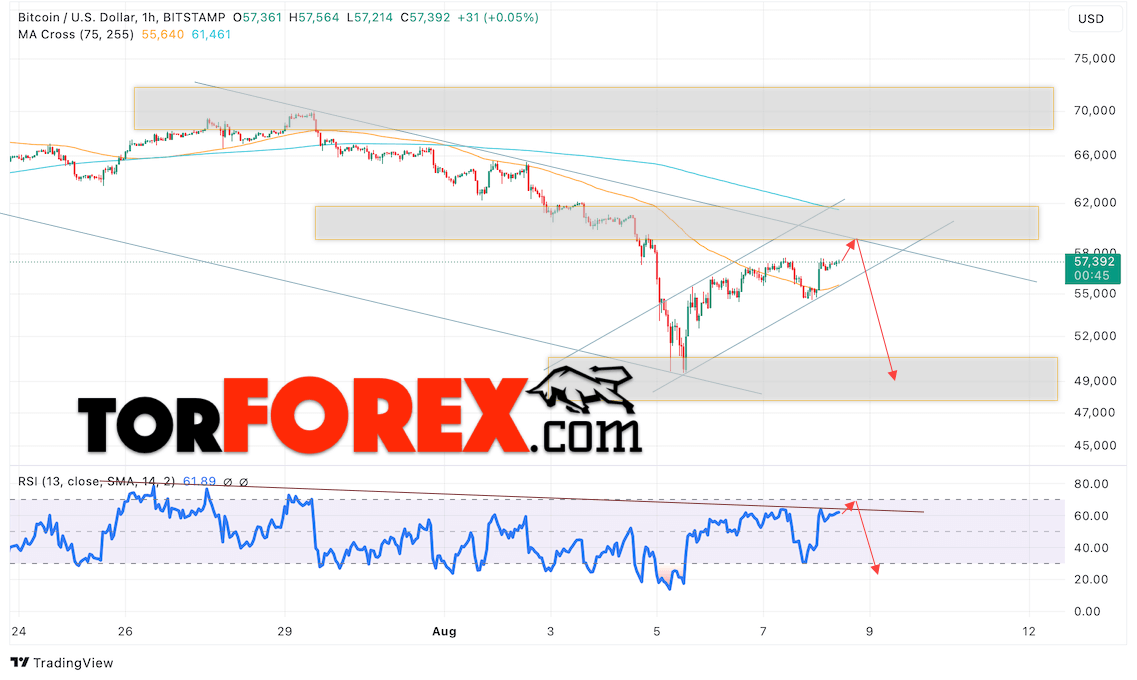 BTC/USD прогноз курса Биткоина на 9 августа 2024