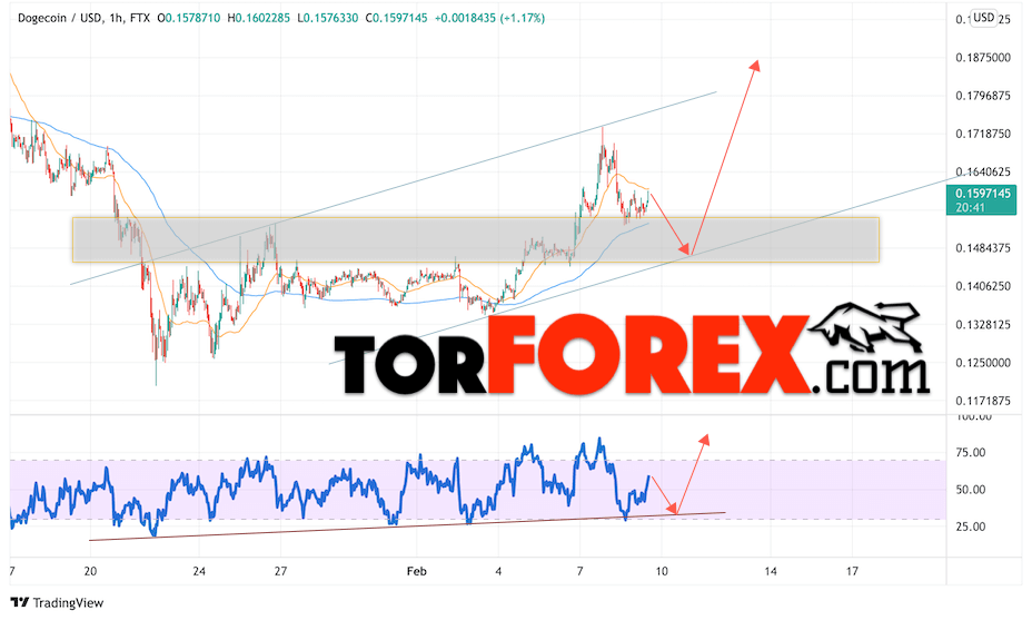 Сильный сигналом в пользу роста котировок DOGE/USD выступит отскок от линии поддержки на индикаторе относительной силы. Вторым сигналом станет отскок от нижней границы бычьего канала. Отменой варианта роста монеты станет падение стоимости актива и пробой области 0.1385. Это укажет на пробой области поддержки и продолжение падения курса криптовалюты с потенциальной целью ниже уровня 0.1025. С пробоем области сопротивления и закрытием котировок выше уровня 0.1875 стоит ожидать подтверждения развития бычьего импульса по Dogecoin.