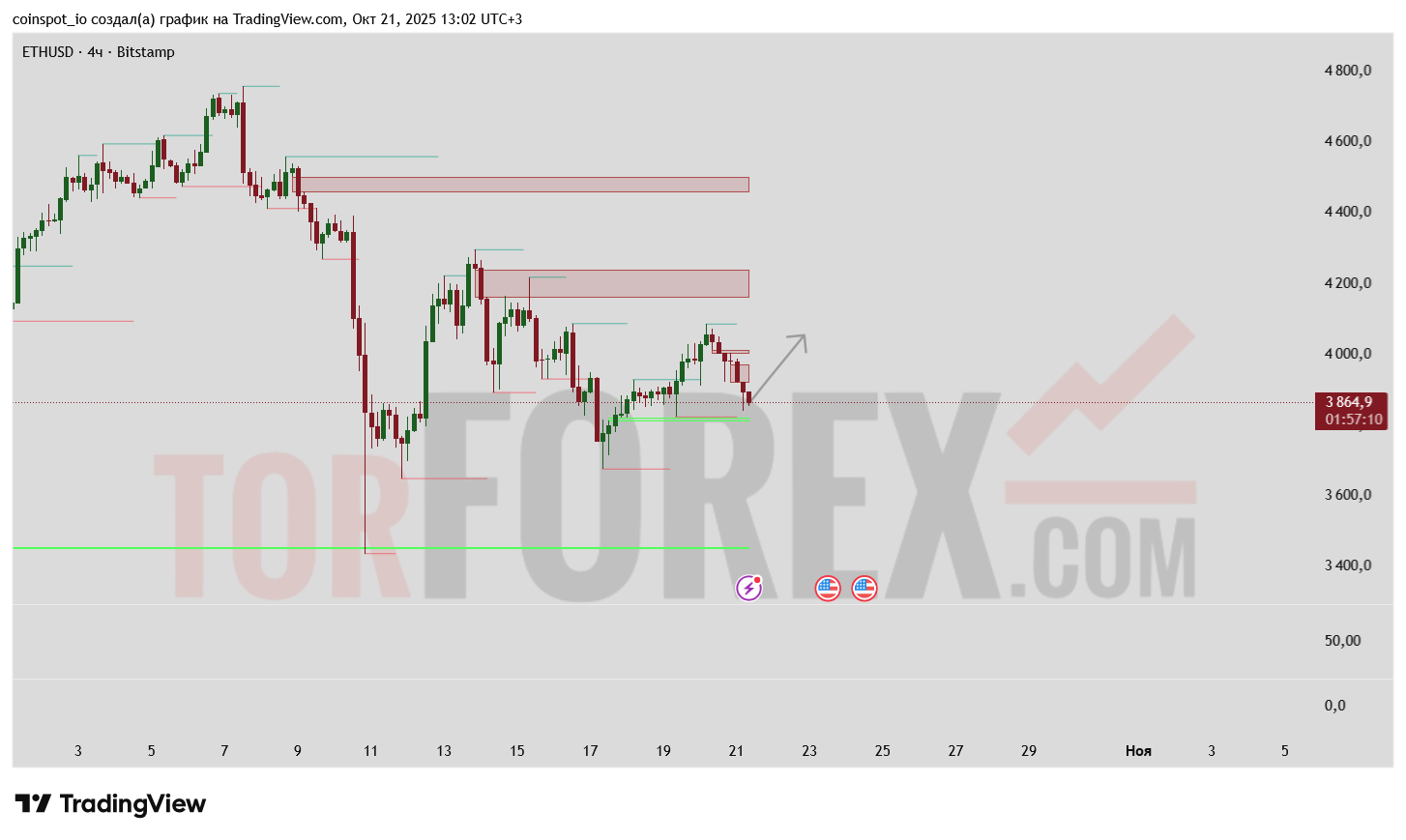 Критическая поддержка: 3800-3860 (зона FVG + EMA 100)