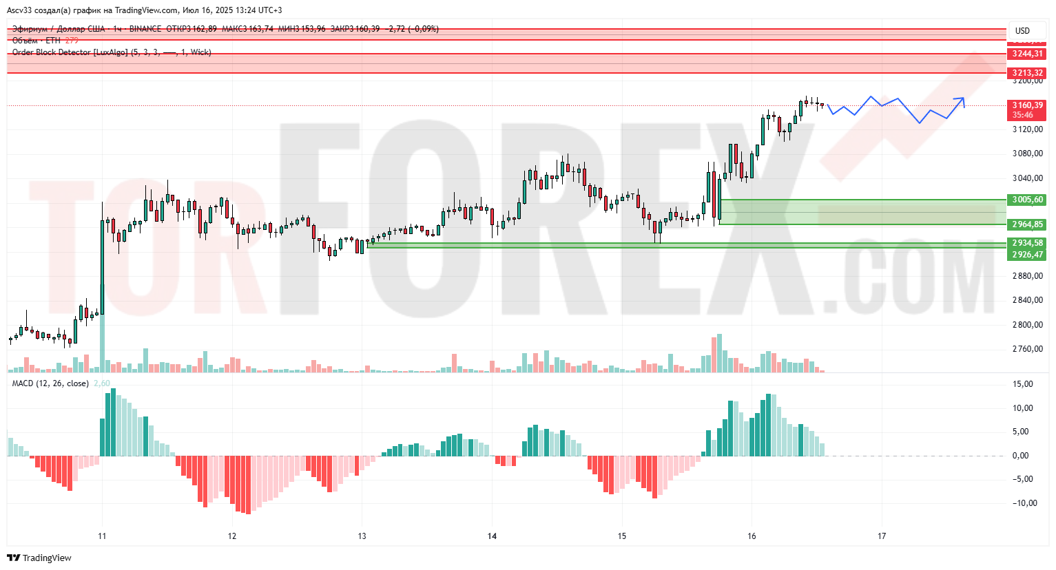 Ожидается боковая динамика в диапазоне 3100–3210 с попытками выхода вверх. Устойчивый пробой зоны 3213 откроет дорогу к 3300–3350. Возврат ниже 3000 будет сигналом к возможной коррекции до 2960–2930.