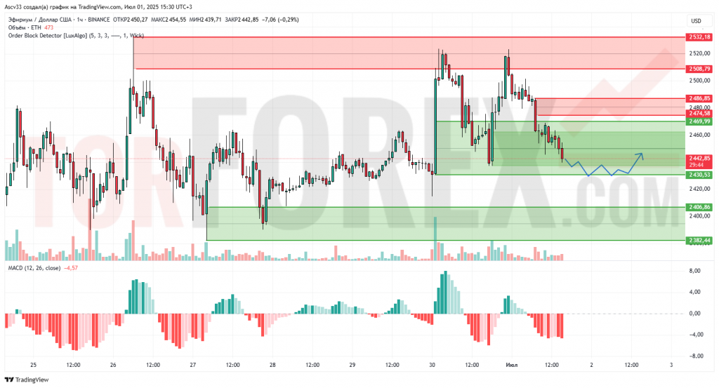 2469–2430 — активная зона спроса, где ранее был мощный импульс вверх.