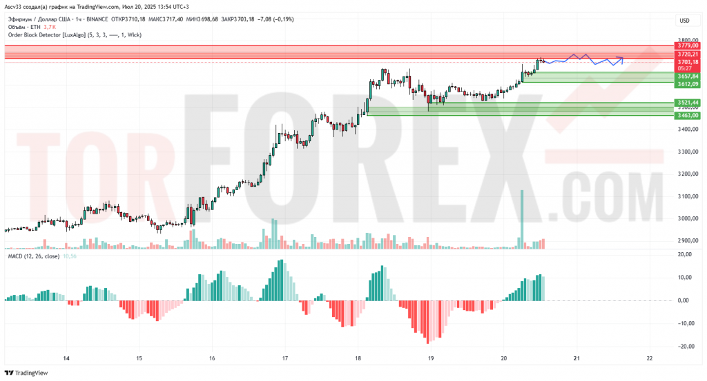3720–3779 — активная зона предложения, где ранее начиналась фиксация прибыли. Пробой выше откроет путь к новым локальным максимумам.