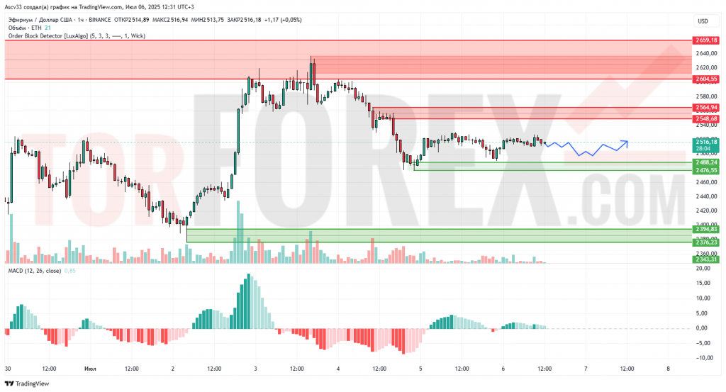 Ожидается продолжение консолидации в диапазоне 2488–2528. Прорыв выше 2548 может дать краткосрочный бычий импульс. Пока сценарий остаётся нейтральным с возможным откатом к поддержке 2488 при неспособности пробить зону 2548–2564.