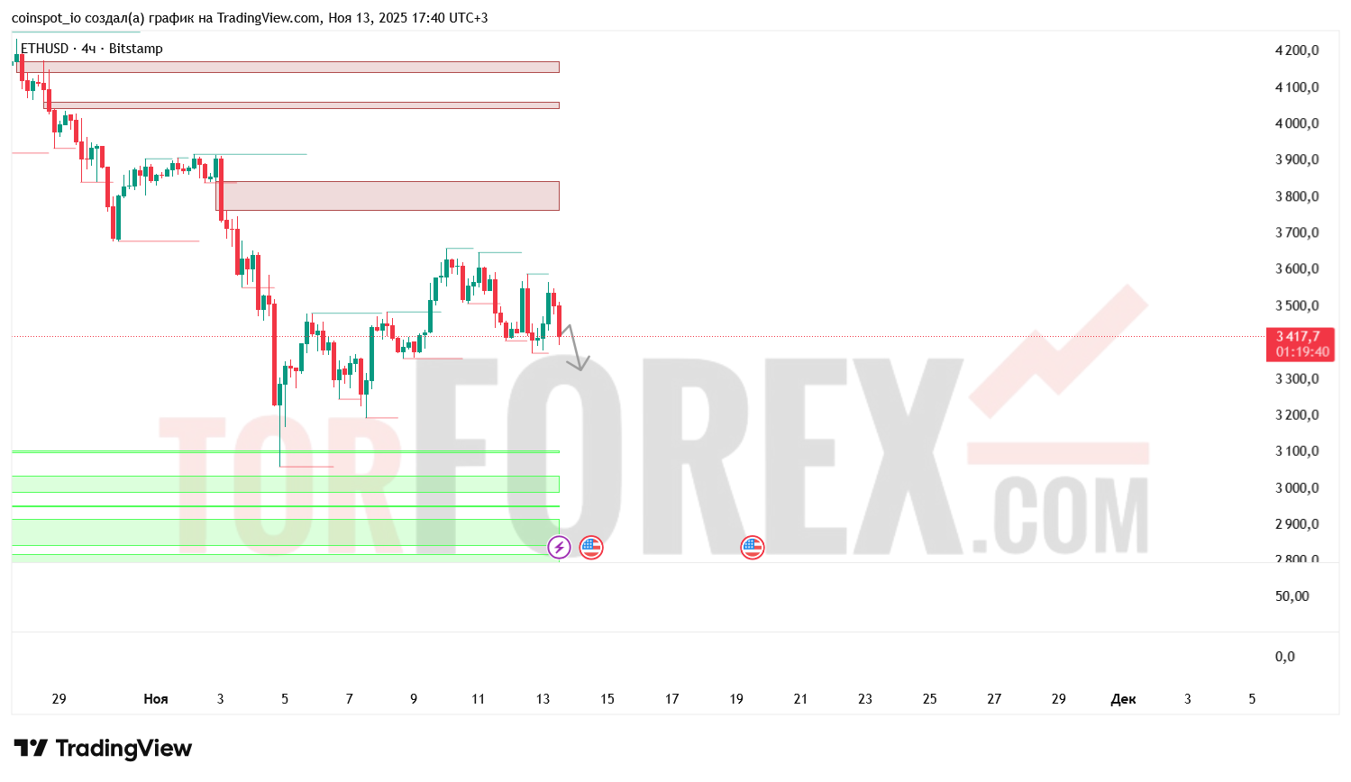 - Заполнение FVG-зоны усилит вероятность снижения к 3280 USD.