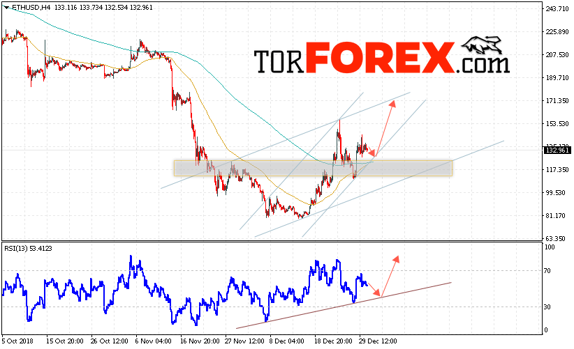 Таким образом, ETH/USD прогноз курса Ethereum на 1 января 2019 предполагает попытку теста области поддержки вблизи уровня 125. Откуда стоит ожидать отскок и продолжения роста криптовалюты ETH/USD в область выше уровня 170. Дополнительным сигналом в пользу роста Ethereum выступит тест линии тренда на индикаторе относительной силы. Отменой варианта роста цифровой валюты выступит пробой области 105. Что укажет на продолжение падения с потенциальной целью ниже уровня 80.
