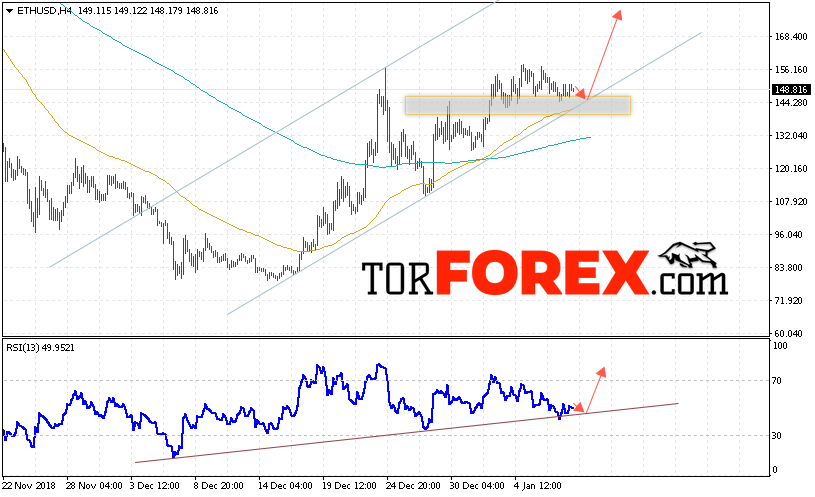 Дополнительным сигналом в пользу роста котировок ETH/USD выступит тест линии тренда на индикаторе относительной силы. А также отскок от нижней границы восходящего канала. Отменой варианта роста криптовалюты станет падение и пробой уровня 135. Это укажет на пробой нижней границы восходящего канала и продолжение падения котировок ETH/USD ниже уровня 100. С пробоем области сопротивления и закрытием котировок выше уровня 165 стоит ожидать ускорения развития восходящего движения по Ethereum.