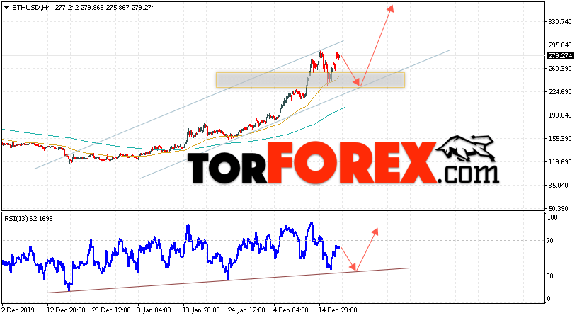 Дополнительным сигналом в пользу подъёма котировок ETH/USD выступит тест линии поддержки на индикаторе относительной силы (RSI). Вторым сигналом станет отскок от нижней границы восходящего канала. Отменой варианта роста криптовалюты станет падение и пробой уровня 205.55. Это укажет на пробой нижнем границы восходящего канала и продолжение падения котировок ETH/USD ниже уровня 175.55. С пробоем области сопротивления и закрытием котировок выше уровня 295.05 стоит ожидать подтверждения развития роста по Ethereum.