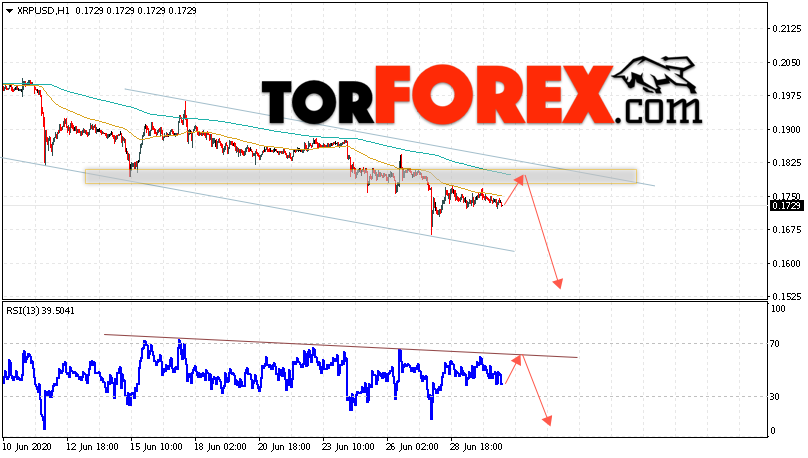 В пользу падения котировок XRP/USD выступит тест нисходящего линии тренда на индикаторе относительной силы. Вторым сигналом в пользу снижения котировок актива станет отскок от верхней границы нисходящего канала. Отменой варианта падения криптовалюты станет сильный рост и закрытие котировок выше уровня 0.1905. Это укажет на пробой области сопротивления и продолжение роста XRP/USD в область выше уровня 0.2205. Подтверждением падения курса цифровой валюты выступит пробой области поддержки и закрытие под уровнем 0.1635. В этом случае стоит ожидать ускорения развития падения стоимости Ripple.