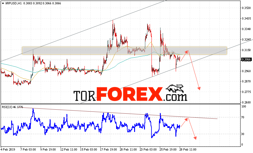 Таким образом, Криптовалюта Ripple прогноз курса на 1 марта 2019 предполагает попытку теста уровня сопротивления вблизи области 0.3150. Откуда стоит ожидать продолжения падения криптовалюты с потенциальной целью на уровне 0.2775. Дополнительным сигналом в пользу снижения Ripple выступит тест линии тренда на индикаторе относительной силы. Отменой варианта падения котировок станет сильный рост и пробой области 0.3210. В этом случае стоит ожидать продолжения развития восходящей тенденции по цифровой валюте с целью выше 0.3435.