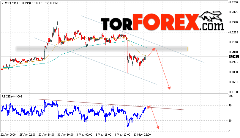 Таким образом, Криптовалюта Ripple прогноз курса на 13 мая 2020 предполагает попытку теста уровня сопротивления вблизи области 0.2035. Откуда стоит ожидать продолжения падения криптовалюты с потенциальной целью на уровне 0.1585. Дополнительным сигналом в пользу снижения Ripple выступит тест линии тренда на индикаторе относительной силы. Отменой варианта падения котировок станет сильный рост и пробой области 0.2235. В этом случае стоит ожидать продолжения развития подъёма по цифровой валюте с целью выше 0.2545.