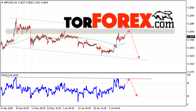 В пользу падения котировок XRP/USD выступит тест нисходящего линии тренда на индикаторе относительной силы. Вторым сигналом в пользу снижения котировок актива станет отскок от верхней границы нисходящего канала. Отменой варианта падения криптовалюты станет сильный рост и закрытие котировок выше уровня 0.2255. Это укажет на пробой области сопротивления и продолжение роста XRP/USD в область выше уровня 0.2465. Подтверждением падения курса цифровой валюты выступит пробой области поддержки и закрытие под уровнем 0.1805. В этом случае стоит ожидать ускорения развития падения стоимости Ripple.