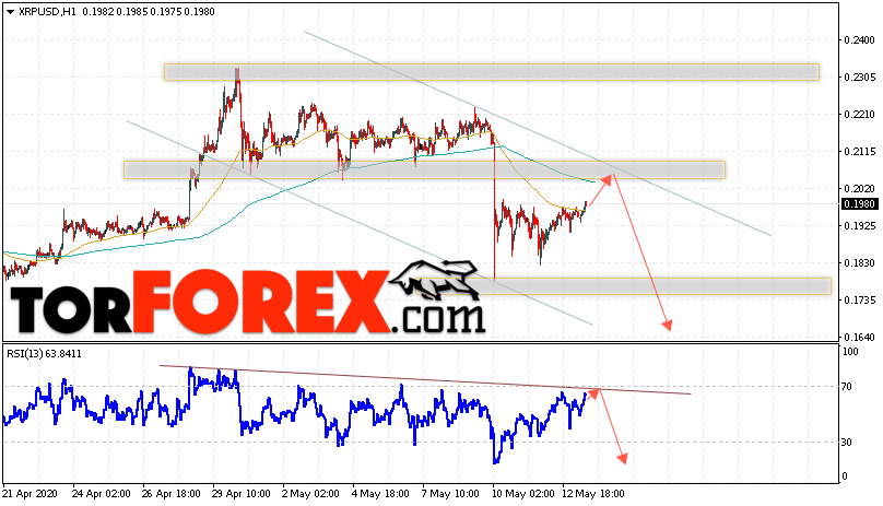 Таким образом, Криптовалюта Ripple прогноз курса на 14 мая 2020 предполагает попытку теста уровня сопротивления вблизи области 0.2055. Откуда стоит ожидать продолжения падения криптовалюты с потенциальной целью на уровне 0.1645. Дополнительным сигналом в пользу снижения Ripple выступит тест линии тренда на индикаторе относительной силы. Отменой варианта падения котировок станет сильный рост и пробой области 0.2205. В этом случае стоит ожидать продолжения развития подъёма по цифровой валюте с целью выше 0.2545.