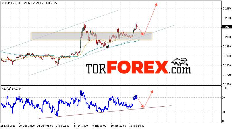 Таким образом, Криптовалюта Ripple прогноз курса на 15 января 2020 предполагает попытку теста уровня поддержки вблизи области 0.2085. Откуда стоит ожидать продолжения роста криптовалюты с потенциальной целью на уровне 0.2645. Дополнительным сигналом в пользу подъёма Ripple выступит тест линии тренда на индикаторе относительной силы. Отменой варианта роста котировок станет падение и пробой области 0.2045. В этом случае стоит ожидать продолжения развития снижения по цифровой валюте с целью ниже 0.1755.