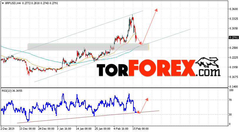 В пользу подъёма котировок XRP/USD выступит тест восходящей линии тренда на индикаторе относительной силы. Вторым сигналом в пользу роста котировок актива станет отскок от нижней границы восходящего канала. Отменой варианта подъёма криптовалюты станет падение и закрытие котировок ниже уровня 0.2415. Это укажет на пробой области поддержки и продолжение падения XRP/USD в область ниже уровня 0.2055. Подтверждением роста курса цифровой валюты выступит пробой области сопротивления и закрытие над уровнем 0.3055. В этом случае стоит ожидать ускорения развития роста стоимости Ripple.