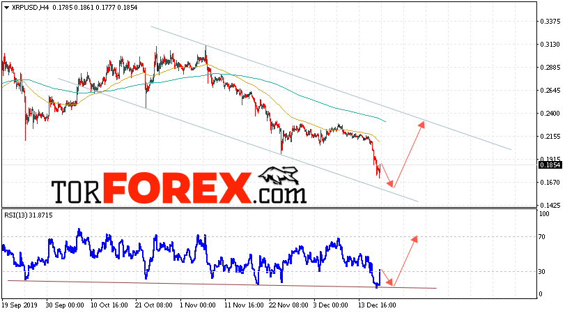 В пользу роста котировок XRP/USD выступит тест линии тренда на индикаторе относительной силы. Вторым сигналом в пользу подъёма котировок актива станет отскок от нижней границы нисходящего канала. Отменой варианта роста криптовалюты станет падение и закрытие котировок ниже уровня 0.1405. Это укажет на пробой области поддержки и продолжение падения XRP/USD в область ниже уровня 0.1005. Подтверждением роста курса цифровой валюты выступит пробой области сопротивления и закрытие над уровнем 0.1985. В этом случае стоит ожидать ускорения развития бычьей тенденции Ripple.