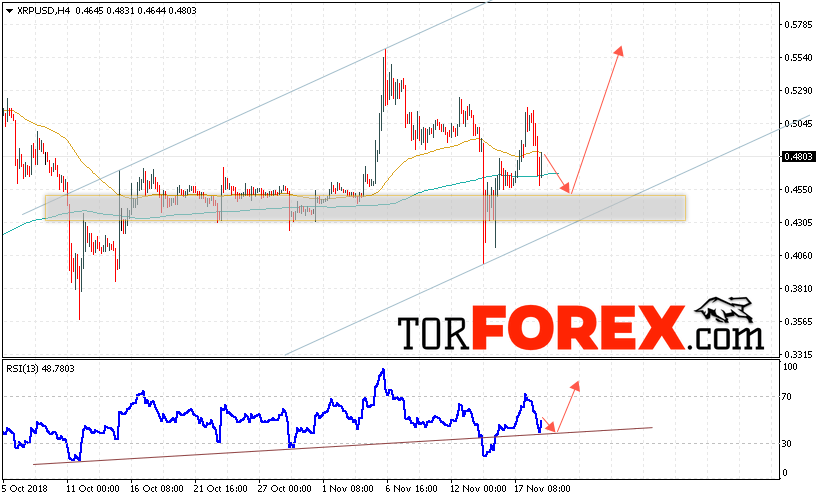 Таким образом, Криптовалюта Ripple прогноз курса на 20 ноября 2018 предполагает попытку теста уровня поддержки вблизи области 0.4550. Откуда стоит ожидать продолжения роста криптовалюты с потенциальной целью на уровне 0.5540. Дополнительным сигналом в пользу подъёма Ripple выступит тест линии тренда на индикаторе относительной силы. Отменой варианта роста котировок станет снижение и пробой области 0.4200. В этом случае стоит ожидать продолжения развития нисходящей тенденции по цифровой валюте.