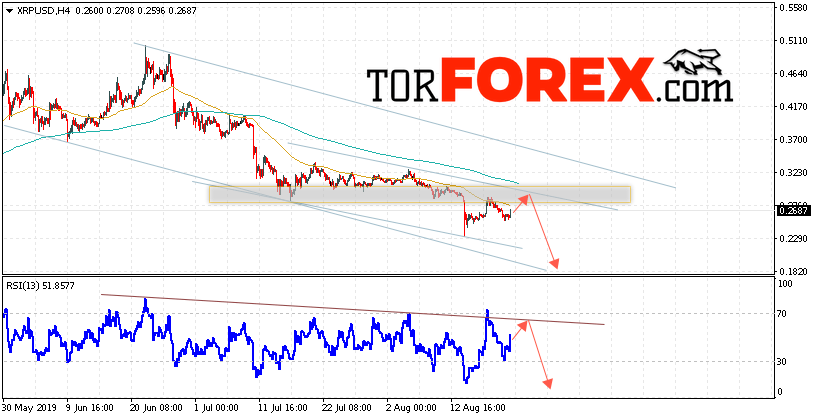 Таким образом, Криптовалюта Ripple прогноз курса на 23 августа 2019 предполагает попытку теста уровня сопротивления вблизи области 0.2715. Откуда стоит ожидать продолжения падения криптовалюты с потенциальной целью на уровне 0.1825. Дополнительным сигналом в пользу снижения Ripple выступит тест линии тренда на индикаторе относительной силы. Отменой варианта падения котировок станет сильный рост и пробой области 0.3235. В этом случае стоит ожидать продолжения развития восходящей тенденции по цифровой валюте с целью выше 0.3585.
