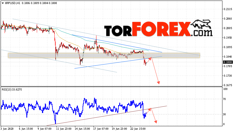 Таким образом, Криптовалюта Ripple прогноз курса на 25 июня 2020 предполагает попытку теста уровня сопротивления вблизи области 0.1825. Откуда стоит ожидать продолжения падения криптовалюты с потенциальной целью на уровне 0.1665. Дополнительным сигналом в пользу снижения Ripple выступит тест линии тренда на индикаторе относительной силы. Отменой варианта падения котировок станет сильный рост и пробой области 0.1925. В этом случае стоит ожидать продолжения развития подъёма по цифровой валюте с целью выше 0.2225.