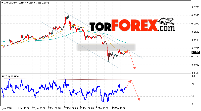 В пользу снижения котировок XRP/USD выступит тест линии сопротивления на индикаторе относительной силы. Вторым сигналом в пользу падения котировок актива станет отскок от верхней границы нисходящего канала. Отменой варианта падения криптовалюты станет сильный рост и закрытие котировок выше уровня 0.1965. Это укажет на пробой области сопротивления и продолжение роста XRP/USD в область выше уровня 0.2455. Подтверждением падения курса цифровой валюты выступит пробой области поддержки и закрытие под уровнем 0.1255. В этом случае стоит ожидать ускорения развития падения стоимости Ripple.