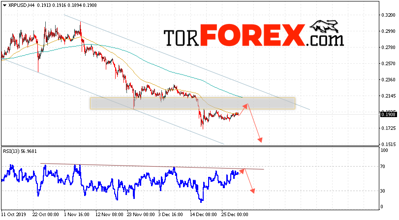 В пользу снижения котировок XRP/USD выступит тест линии тренда на индикаторе относительной силы. Вторым сигналом в пользу падения котировок актива станет отскок от верхней границы нисходящего канала. Отменой варианта снижения криптовалюты станет сильный рост и закрытие котировок выше уровня 0.2375. Это укажет на пробой области сопротивления и продолжение роста XRP/USD в область выше уровня 0.2795. Подтверждением падения курса цифровой валюты выступит пробой области поддержки и закрытие под уровнем 0.1705. В этом случае стоит ожидать ускорения развития нисходящей тенденции Ripple.