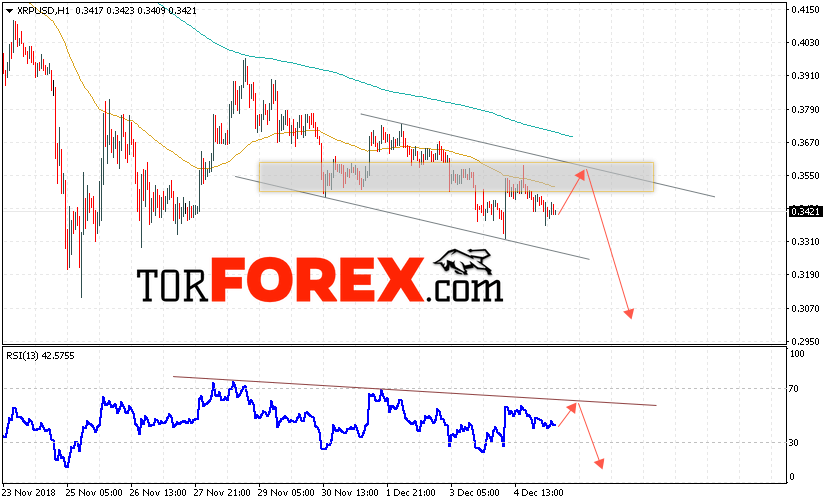 В пользу падения котировок XRP/USD выступит тест линии тренда на индикаторе относительной силы. А также отскок от верхней границы нисходящего канала. Отменой варианта падения криптовалюты станет сильный рост и закрытие котировок выше уровня 0.3700. Это укажет на пробой уровня сопротивления и продолжение роста XRP/USD в область выше уровня 0.4000. С пробоем уровня поддержки и закрытием ниже области 0.3250 стоит ожидать подтверждения развития снижения по Ripple.