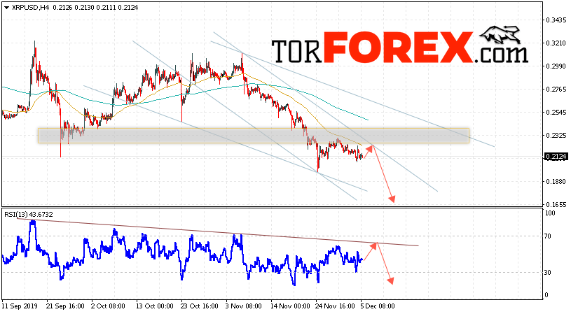 В пользу снижения котировок XRP/USD выступит тест нисходящей линии тренда на индикаторе относительной силы. Вторым сигналом в пользу падения котировок актива станет отскок от верхней границы нисходящего канала. Отменой варианта падения криптовалюты станет сильный рост и закрытие котировок выше уровня 0.2655. Это укажет на пробой области сопротивления и продолжение роста XRP/USD в область выше уровня 0.3045. Подтверждением падения курса цифровой валюты выступит пробой области поддержки и закрытие под уровнем 0.1905. В этом случае стоит ожидать ускорения развития нисходящей тенденции Ripple.