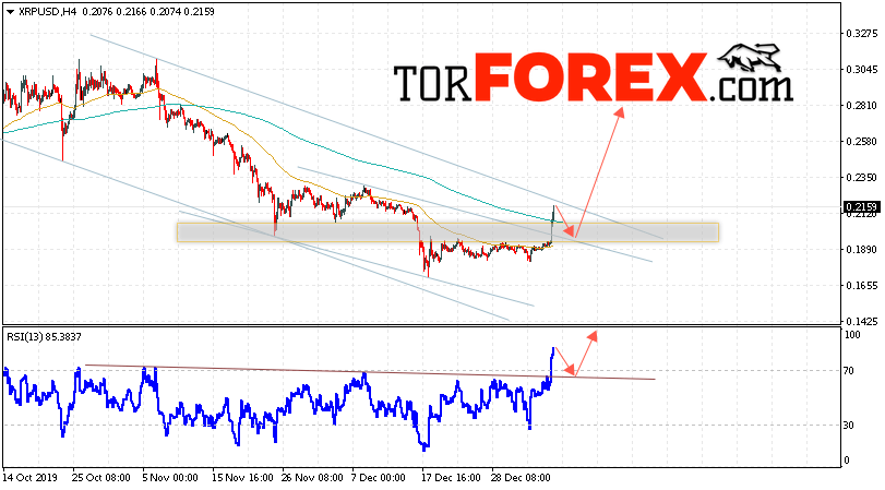 В пользу подъёма котировок XRP/USD выступит тест пробитой линии тренда на индикаторе относительной силы. Вторым сигналом в пользу роста котировок актива станет отскок от верхней границы нисходящего канала. Отменой варианта подъёма криптовалюты станет падение и закрытие котировок ниже уровня 0.1725. Это укажет на пробой области поддержки и продолжение падения XRP/USD в область ниже уровня 0.1345. Подтверждением роста курса цифровой валюты выступит пробой верхней границы нисходящего канала и закрытие над уровнем 0.2265. В этом случае стоит ожидать ускорения развития роста стоимости Ripple.