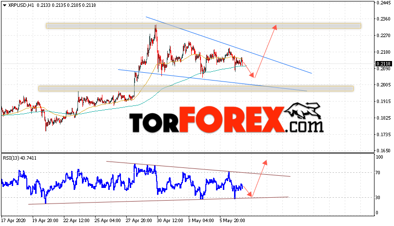 Таким образом, Криптовалюта Ripple прогноз курса на 8 мая 2020 предполагает попытку теста уровня поддержки вблизи области 0.2015. Откуда стоит ожидать продолжения роста криптовалюты с потенциальной целью на уровне 0.2345. Дополнительным сигналом в пользу подъёма Ripple выступит тест линии тренда на индикаторе относительной силы. Отменой варианта роста котировок станет падение и пробой области 0.1905. В этом случае стоит ожидать продолжения развития снижения по цифровой валюте с целью ниже 0.1655.